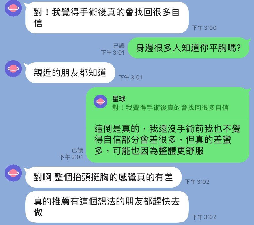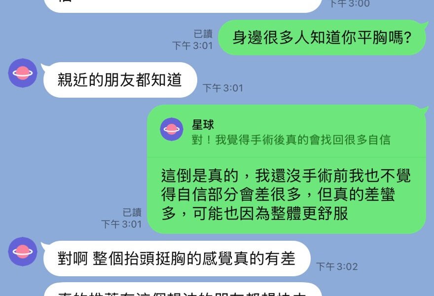 如果你也在考慮平胸手術,歡迎和我聊聊,