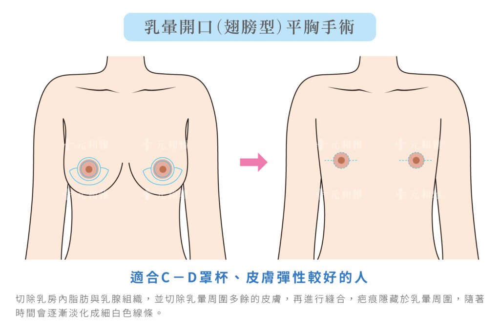 微創平胸手術透過小切口方式移除乳腺與脂肪,傷口小、恢復快、疤痕隱藏性高,因此適合胸型偏小、緊實的族群。