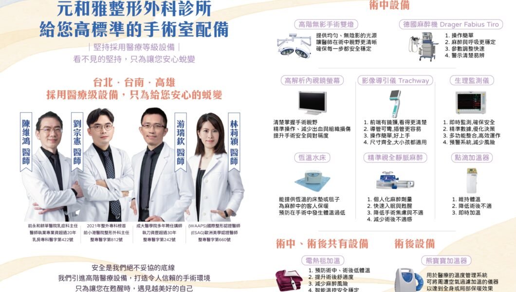 元和雅在台北、台南、高雄皆設有診所,提供便利的諮詢與回診環境。